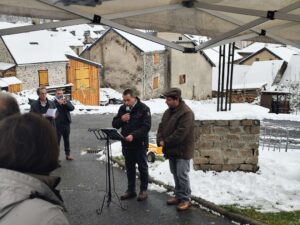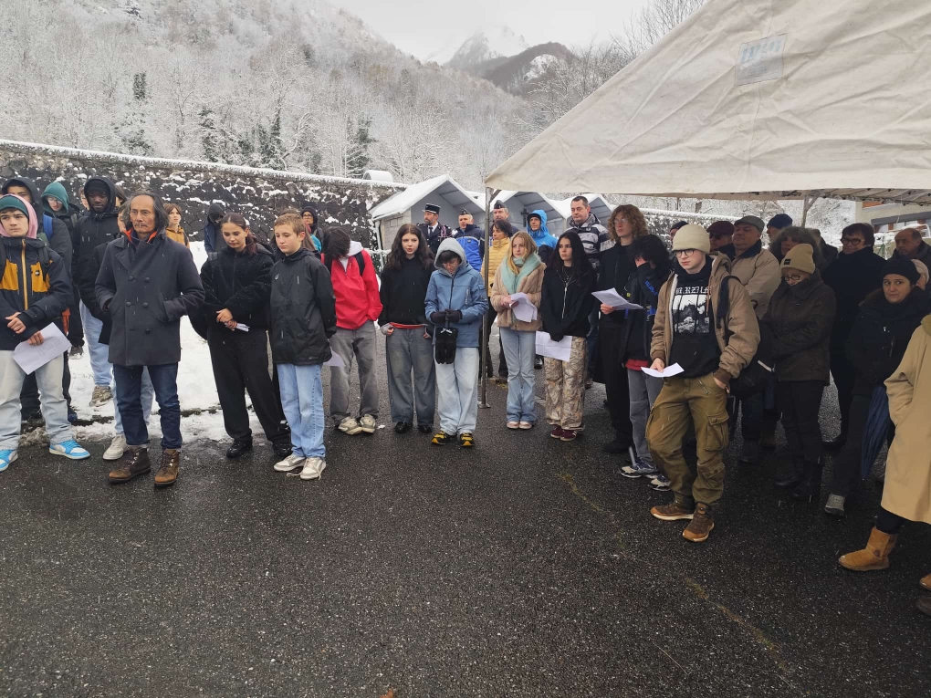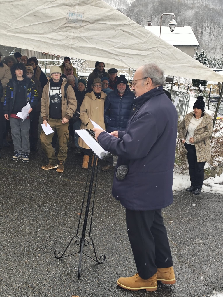 Le vendredi 21 novembre 2025, par un froid glacial, une plaque portant les noms de 12 passeuses et passeurs d’Aulus-les-Bains et d’Ercé élevé(e)s au rang de Justes parmi les Nations a été dévoilée :