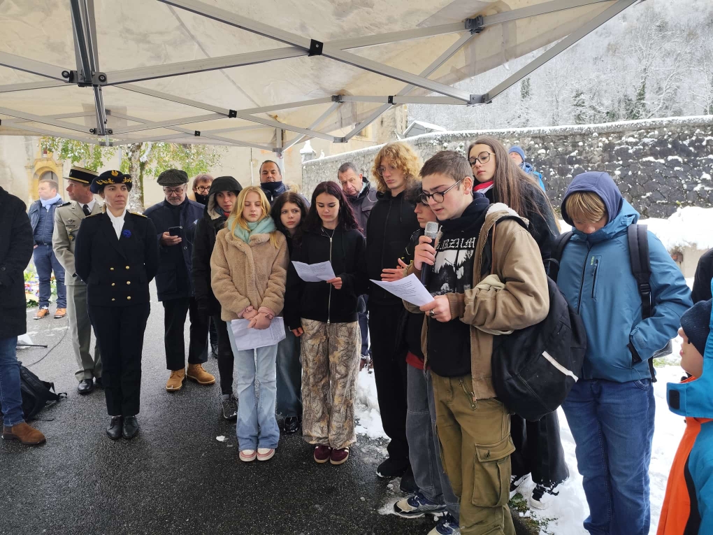 Les élèves d’une classe de 3e du collège Jules Palmade de Seix accompagnés et remarquablement préparés par leurs professeurs, Madame Marie NIVET, professeur d’Anglais, Madame Rachel PELOUX, professeur de Français et Madame Alexandra MEURANT, professeur d’Histoire Géographie ont également participé à cette cérémonie.